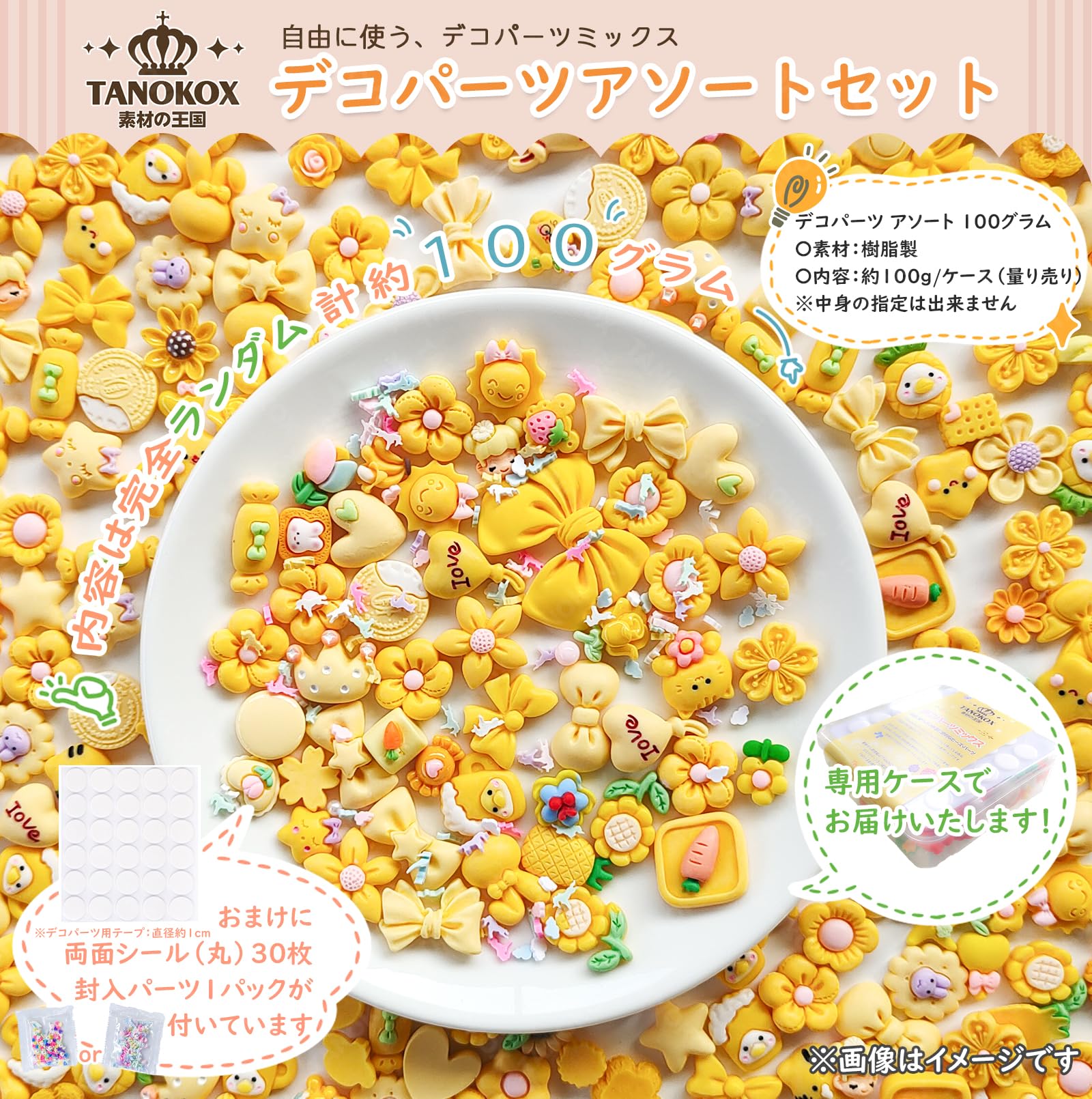 TANOKOX デコパーツ ミックス かわいい キャラクター リボン 花 お菓子 福袋 樹脂貼付けパーツ 樹脂カボション 可愛い 子供 デコレーションパーツ 手芸 ハンドメイド レジンパーツ(イエロー)
