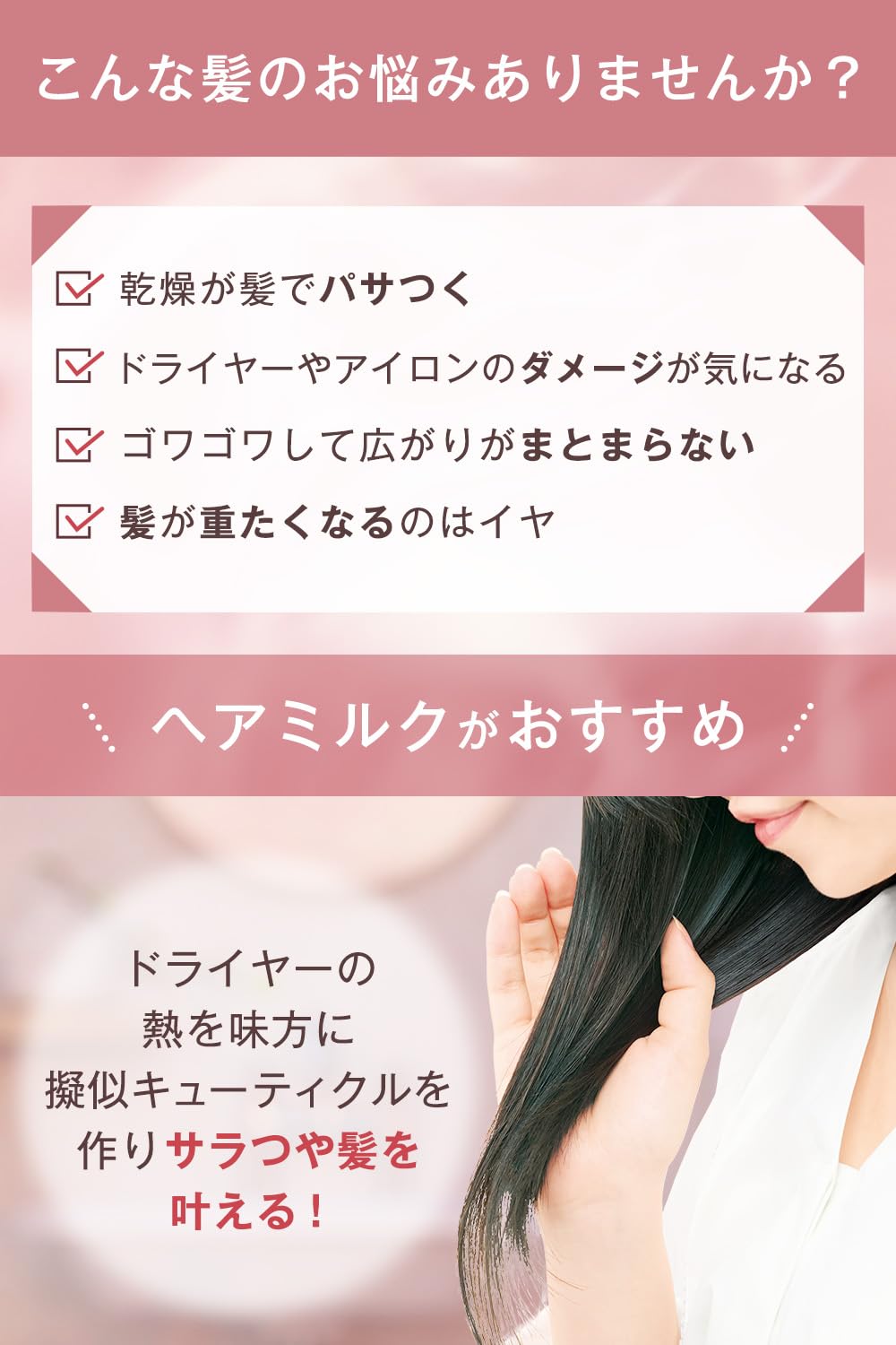 さらに高保水ミルクが、うるおいを逃がさないように髪表面をコート。