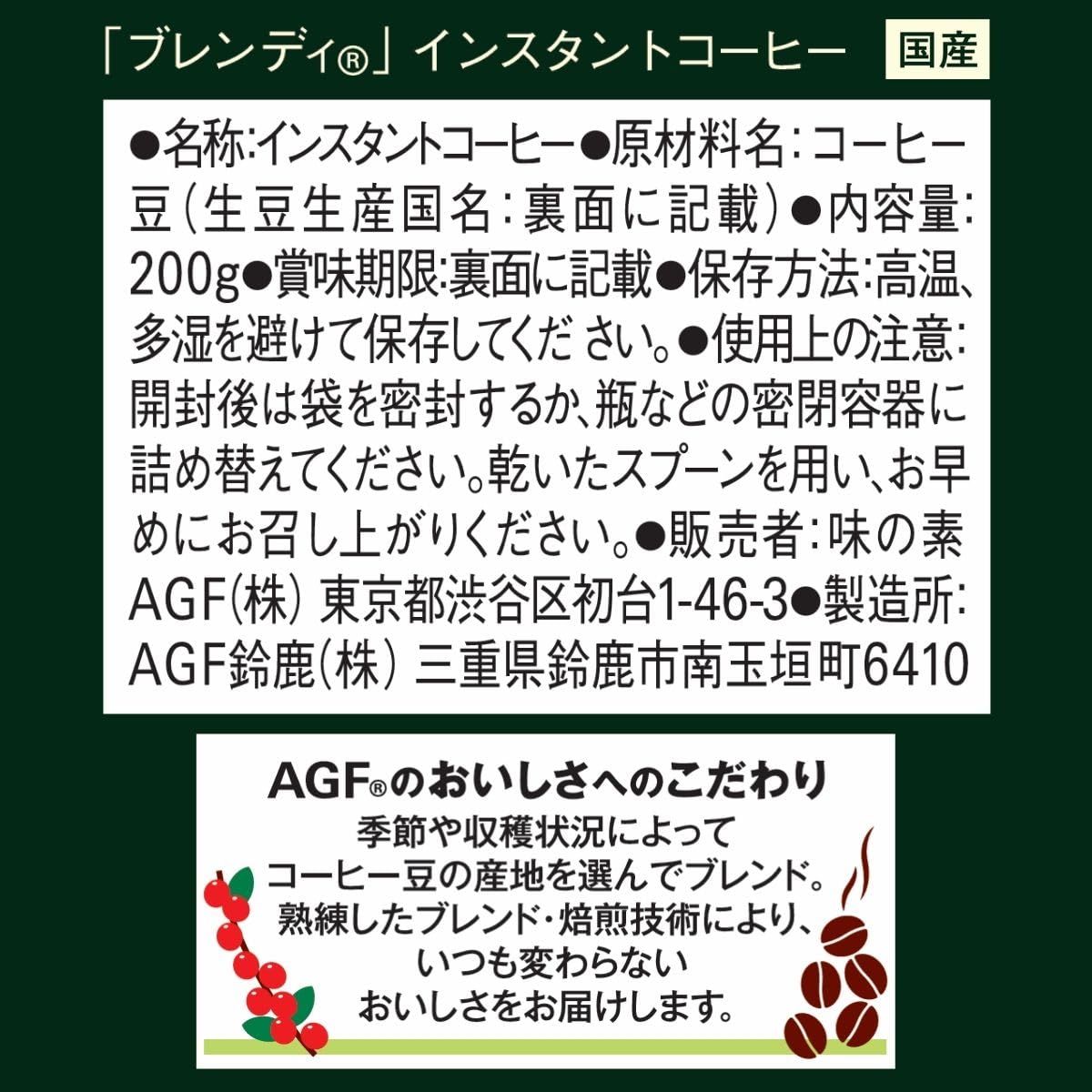 AGF(エージーエフ) ブレンディ 袋【 インスタントコーヒー 】【 水に溶けるコーヒー 】【 カフェオレ 好きに 】【 詰め替え 】 200グラム (x 1)