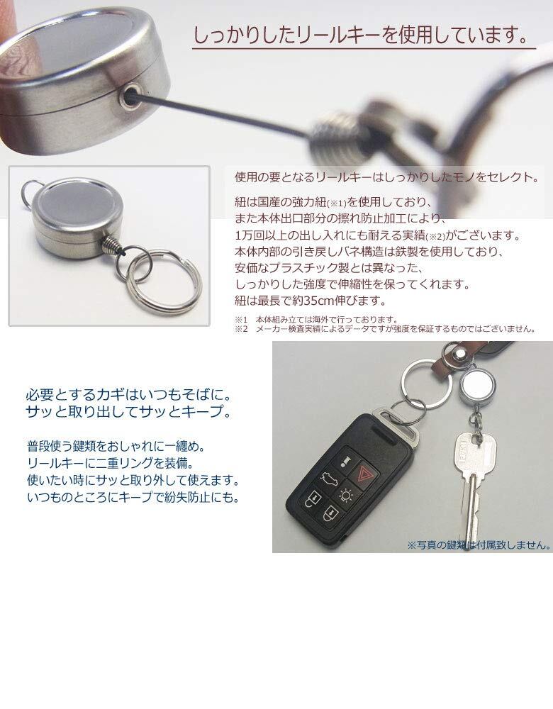 [highstyle] 日本製 栃木レザー&軽量アルミカラビナ&リールキー キーホルダー