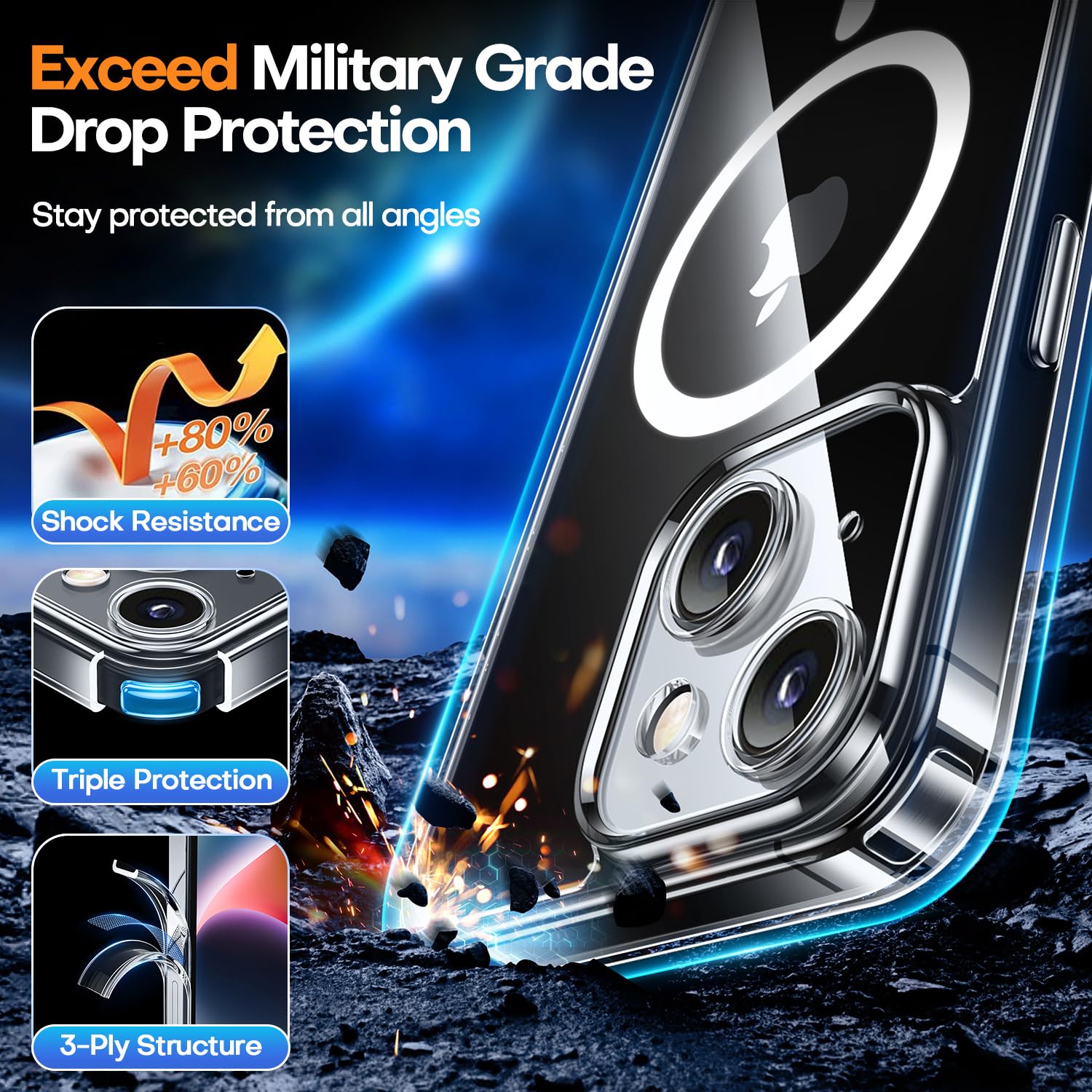CANSHN iPhone 14 Plus 用 ケース 【Magsafe対応・カメラ全面保護】 耐衝撃 黄ばみなし マグネット搭載 ワイヤレス充電 あいふぉん 14 Plus 用 ケース- 透明
