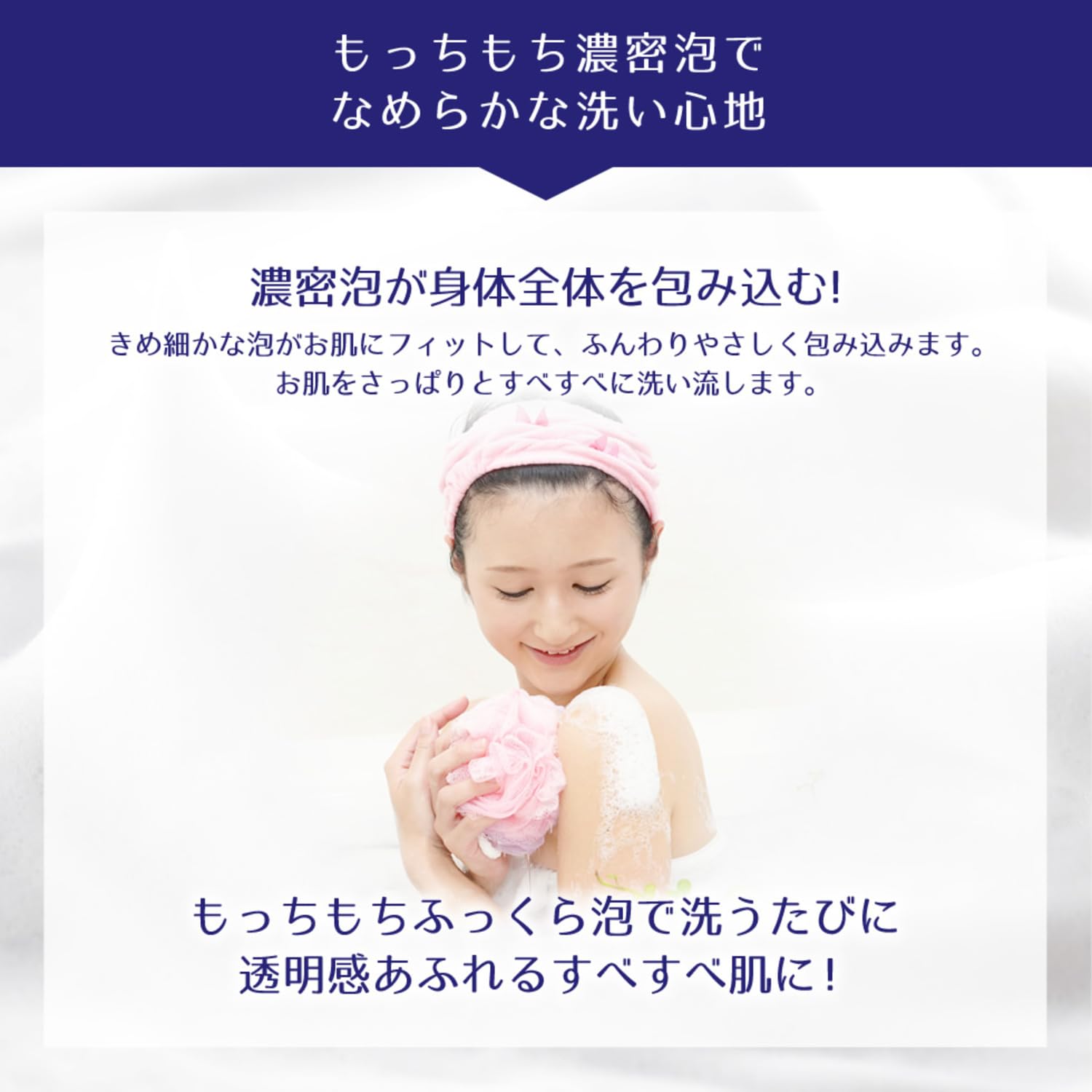●きめ細かな泡がお肌にフィットして、ふんわりやさしく包みこみます。