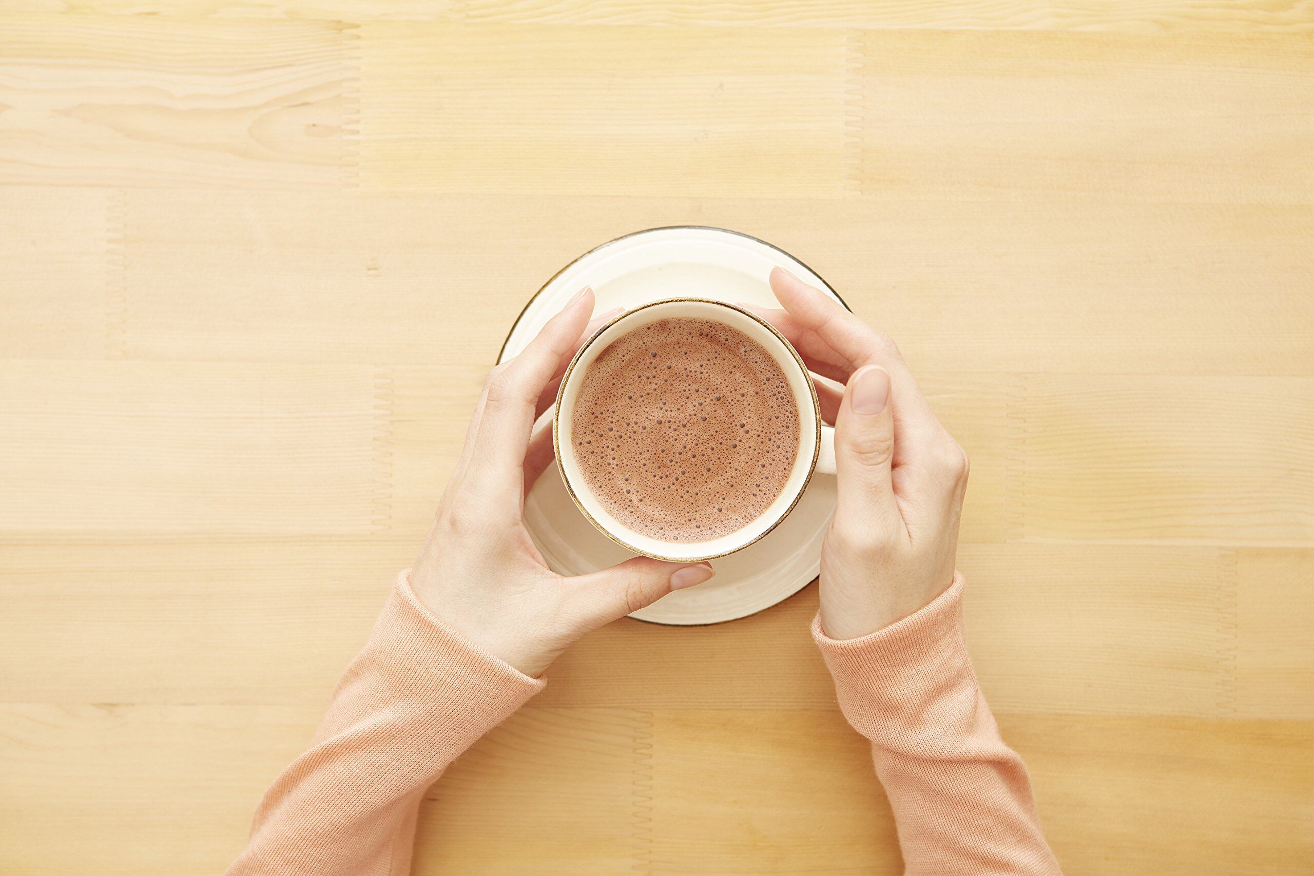 ココアと砂糖に牛乳または水を加えペースト状になるまでよく練り、温めた牛乳を少しずつ加える。