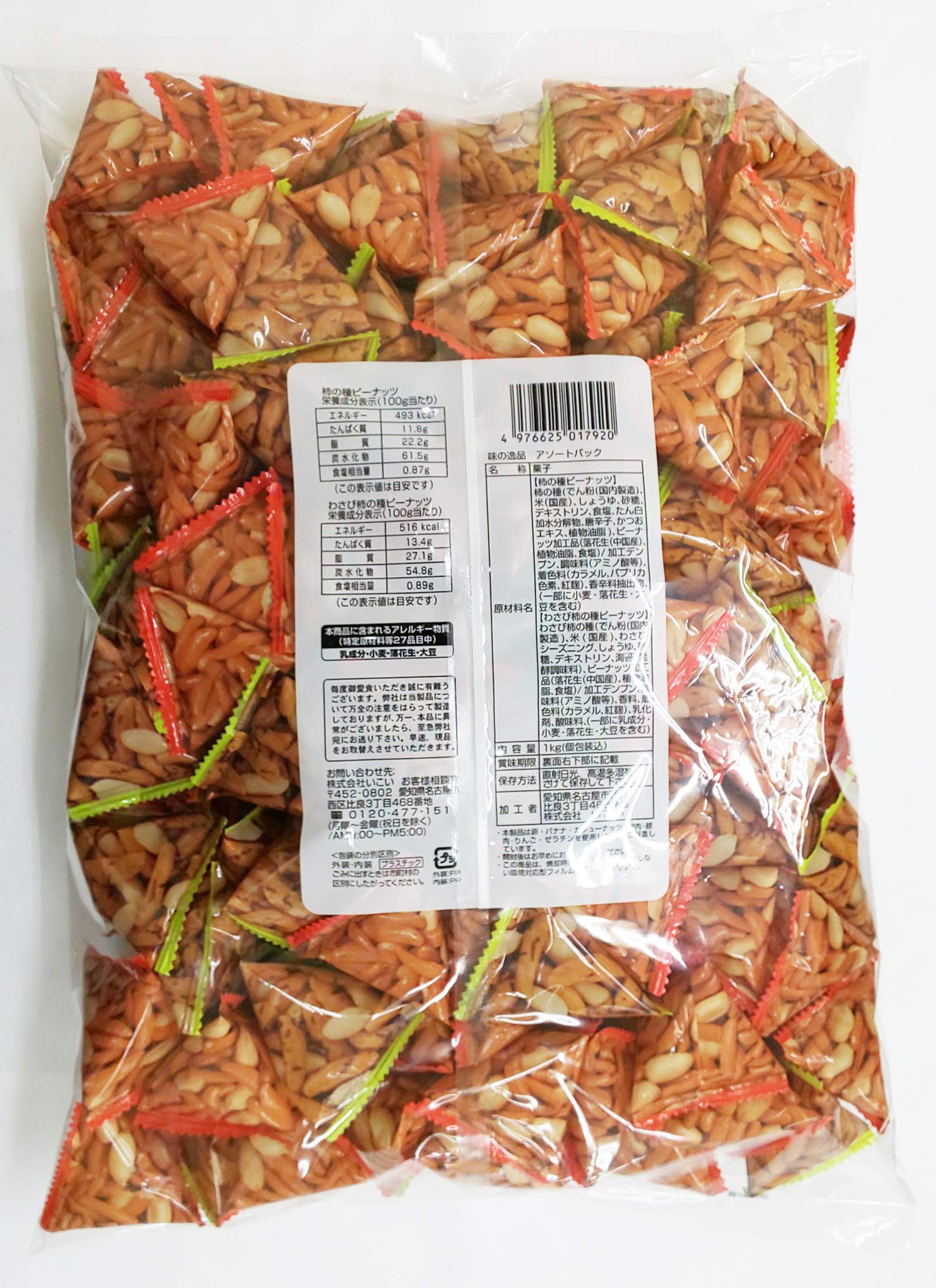大容量の1kg!しょうゆ味の柿ピーとわさび味の柿ピーのアソートパックです。