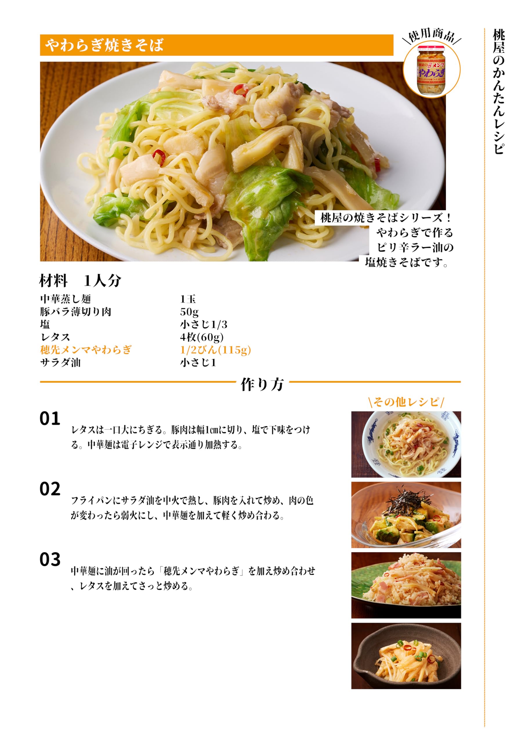 原材料:メンマ(穂先)、ごま油、辣油、砂糖、食塩、清湯エキス、唐辛子、調味料(アミノ酸等)、クエン酸(原材料の一部に小麦を含む)