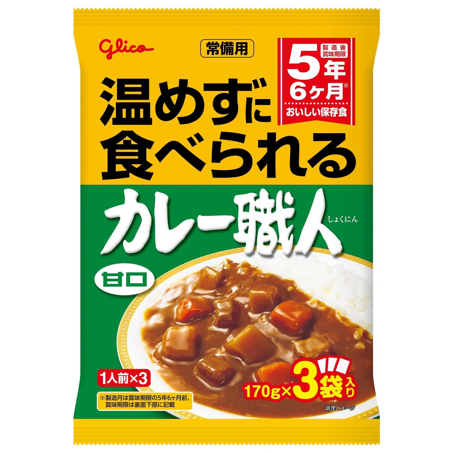【人気商品】常備用 温めずに食べられるカレー職人 甘口 3食パック×5個 江崎グリコ (常温保存/非常食/備蓄/ローリングストック/レトルト/防災/レンジ対応)